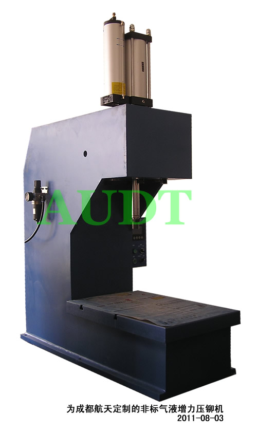 氣液增壓機產(chǎn)品因為其獨特的五大特點---功耗小僅為220V 3W,輸出力大---液壓輸出力 大可達200T,效率高--是普通液壓機速度的三~四倍,可調(diào)節(jié)方式多,便于調(diào)節(jié),壓力,速度,時間,位移等,體積小---很容易組裝成生產(chǎn)線,很小的體積完成大設(shè)備的功能。動作過程自動分成兩段,段快進行程,軟到位保護模具,第二步為液壓,穩(wěn)定地輸出液壓壓力。所以氣液增壓機廣泛應(yīng)用于汽車零部件制造業(yè),軸承裝配業(yè),壓鉚螺柱螺母行業(yè),無鉚釘鉚接的鈑金行業(yè)等等。