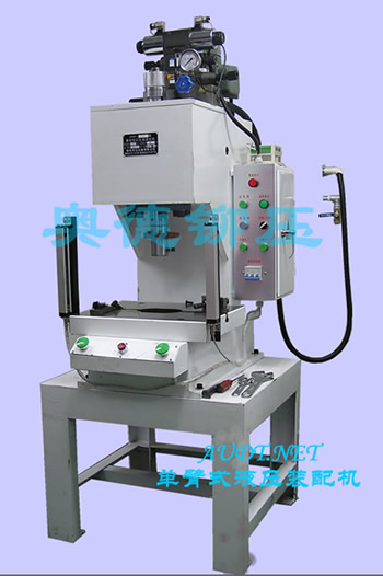 設(shè)備加好 32# 液壓油 , 接好電源后 ( 接地線應(yīng)接 220V 零線 , 不能接地 , 如果二次接地 , 設(shè)備會(huì)自鎖 ), 接通液壓管路 A-A/ /B-B, 按下控制面板上的 ” 油泵啟動(dòng) ””, 油泵 motor 旋轉(zhuǎn)方向應(yīng)為指示的箭頭方向 , 將控制模式設(shè)置為 ” 手動(dòng) ” ,按下面板上 的 ” ▽ ” 開關(guān)旋鉚主軸下行按一次下行 2mm 直至低點(diǎn) , 進(jìn)行對(duì)模操作 , 好使主軸剛好碰到工件的表面 , 對(duì)好中心后 , 鎖緊下工裝 , 然后逐步按下面板上的 ” △ ” 此時(shí)主軸開始向上運(yùn)動(dòng) . 操作人員將零件放入定位夾具中,將控制模式設(shè)置為 ” 自動(dòng) ”, 主軸下行時(shí)間調(diào)節(jié)至 2.5 秒 , 主軸上行時(shí)間調(diào)節(jié)至 2.5 秒 , 此時(shí)可以開始加工工件了 , 按下腳踏開關(guān)或雙手控開關(guān) , 液壓缸行程工作,即可完成合格的產(chǎn)品加工 , 在操作過程中 , 速度調(diào)節(jié)可以通過泵站系統(tǒng)上的調(diào)速旋鈕來完成速度的調(diào)節(jié) , 本設(shè)備對(duì)產(chǎn)品加工無沖擊,無噪音,壓力在規(guī)定的范圍內(nèi)無級(jí)別可調(diào)。