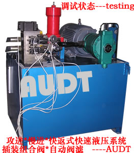 設(shè)備加好 32# 液壓油 , 接好電源后 ( 接地線應(yīng)接 220V 零線 , 不能接地 , 如果二次接地 , 設(shè)備會(huì)自鎖 ), 接通液壓管路 A-A/ /B-B, 按下控制面板上的 ” 油泵啟動(dòng) ””, 油泵 motor 旋轉(zhuǎn)方向應(yīng)為指示的箭頭方向 , 將控制模式設(shè)置為 ” 手動(dòng) ” ,按下面板上 的 ” ▽ ” 開關(guān)主軸下行按一次下行 2mm 直至低點(diǎn) , 進(jìn)行對(duì)模操作 , 好使主軸剛好碰到工件的表面 , 對(duì)好中心后 , 鎖緊下工裝 , 然后逐步按下面板上的 ” △ ” 此時(shí)主軸開始向上運(yùn)動(dòng) . 操作人員將零件放入定位夾具中,將控制模式設(shè)置為 ” 自動(dòng) ”, 主軸下行時(shí)間調(diào)節(jié)至 X 秒 , 主軸上行時(shí)間調(diào)節(jié)至 Y 秒 , 此時(shí)可以開始加工工件了 , 按下腳踏開關(guān)或雙手控開關(guān) , 液壓缸行程工作,即可完成合格的產(chǎn)品加工 , 本設(shè)備對(duì)產(chǎn)品加工無沖擊,無噪音,壓力在規(guī)定的范圍內(nèi)無級(jí)別可調(diào)。